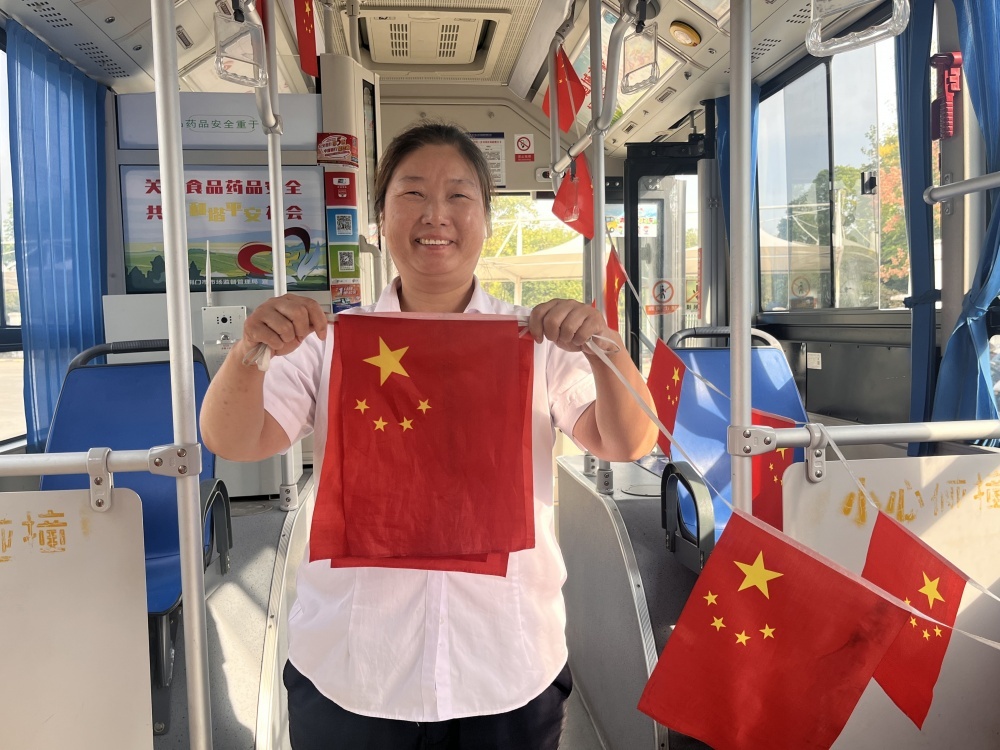 走進公交車廂,映入眼簾的是一面面鮮艷的小國旗,輕輕飄動,仿佛在向每一位乘客傳遞著節(jié)日的喜悅和祝福,除了車廂內(nèi)部的裝飾,公交車輛的LED顯示屏也成為了重要傳播窗口,全天滾動播放國慶祝福語。這些細(xì)節(jié)布置不僅為車輛增添了節(jié)日色彩,也讓市民的出行體驗更加美好。