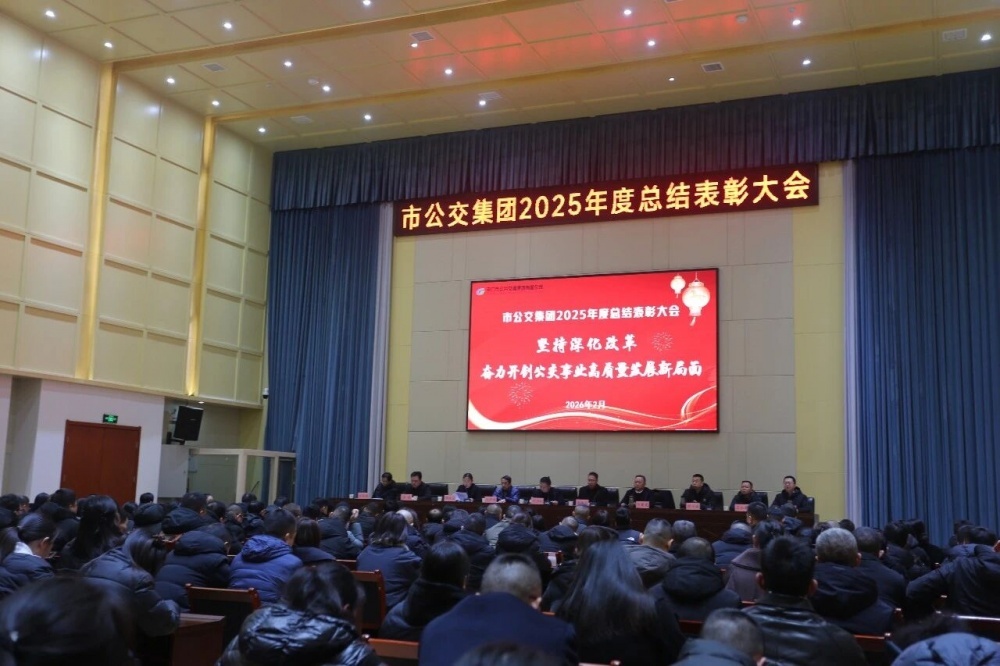 2026年2月9日,市公交集團(tuán)2025年度總結(jié)表彰大會(huì)在集團(tuán)三公司會(huì)議室順利召開。本次大會(huì)全面回顧了2025年及"十四五"時(shí)期集團(tuán)的發(fā)展成果,表彰了先進(jìn)典型,部署了"十五五"及2026年的重點(diǎn)工作,為集團(tuán)高質(zhì)量發(fā)展凝聚奮進(jìn)力量。市政府國(guó)資委黨委委員、副主任鄧興權(quán),市交通運(yùn)輸局黨組成員、副局長(zhǎng)李洪震,市客運(yùn)管理處黨總支書記、處長(zhǎng)劉來(lái)斌應(yīng)邀出席會(huì)議。集團(tuán)黨委班子全體成員、全體中層干部、機(jī)關(guān)工作人員、二級(jí)單位一般管理人員以及獲表彰的單位代表和個(gè)人參加了會(huì)議。大會(huì)由集團(tuán)黨委副書記、總經(jīng)理李曉麗主持。