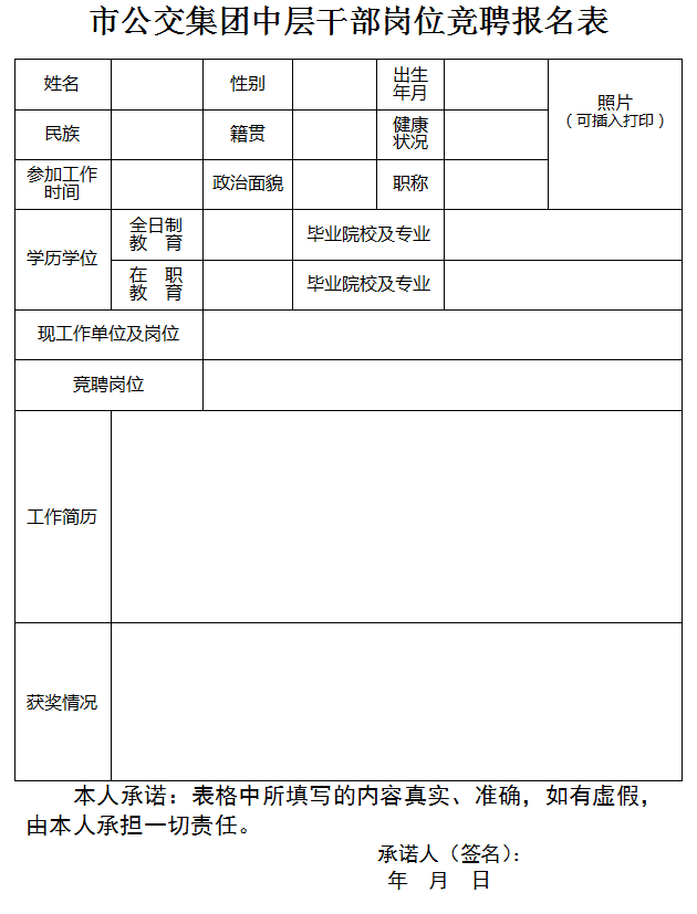 附件: 市公交集團(tuán)中層干部副職崗位競(jìng)聘報(bào)名表